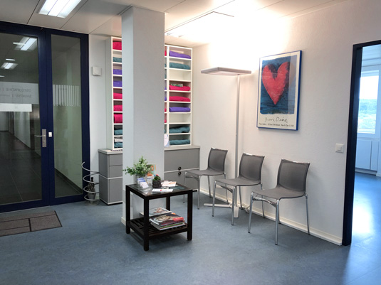 Die Praxis befindet sich im 4. Stock des neu renovierten Gebäudes zwischen der Westbahnhofstrasse und der Wengistrasse. Der grosse Eingangsbereich liegt zwischen der Cler-Bank und dem Denner.